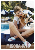 A másik kutyája Ziggy Stardust, aki egy Zwergspitz. Vele is nagyon sokat foglalkozik a mi Meeshünk. Ziggy még a Keds 2007-es kampányfotóin is szerepelt, nagyon édesen "pózolt" Mischával.